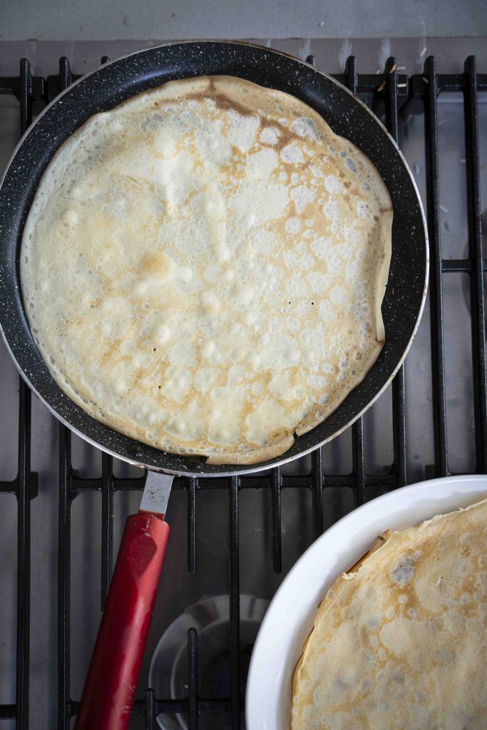 ממשיכים באותו אופן עד שמסיימים את הבלילה, כאשר מקפידים לערבב אותה בין קרפ לקרפ.