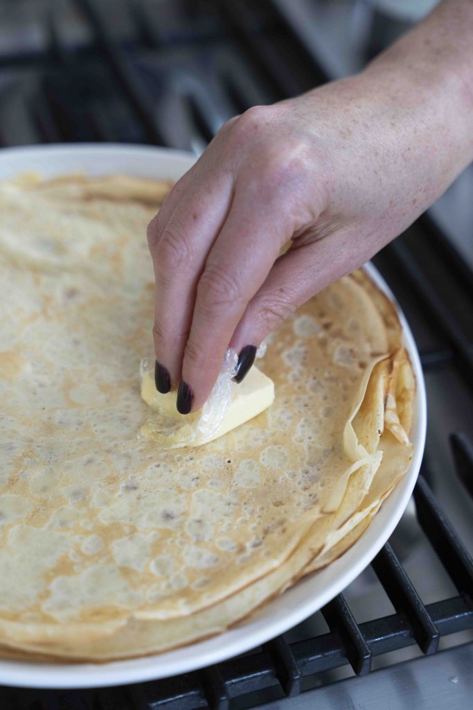 ישנה אפשרות למרוח מעט חמאה על פני חלקו העליון של הקרפ – פשוט מלטפים את הקרפ החם עם חתיכת חמאה.