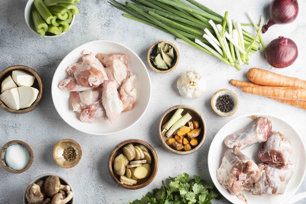 ), אלא גם שיטת הבישול שלו, בה ראשית צולים בתנור מגש של כנפי עוף וירקות שורש שלמים (ולא מקולפים), ללא כל תיבול, ואלו בהמשך מהווים את הבסיס למרק עשיר במיוחד. כעבור כמה שעות, לאחר סינון המרק, מתקבל ציר עמוק ונפלא, שממש מרגיש מכושף מרוב אומאמי וטעם.