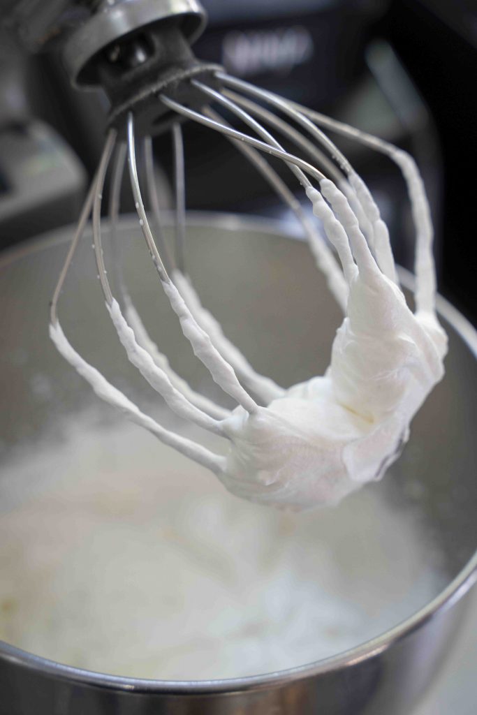 שופכים את 2 מיכלי השמנת המתוקה (500 מ"ל) לקערת המיקסר ומקציפים עד לקבלת קצפת יציבה.