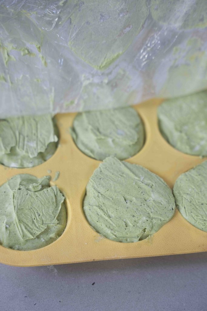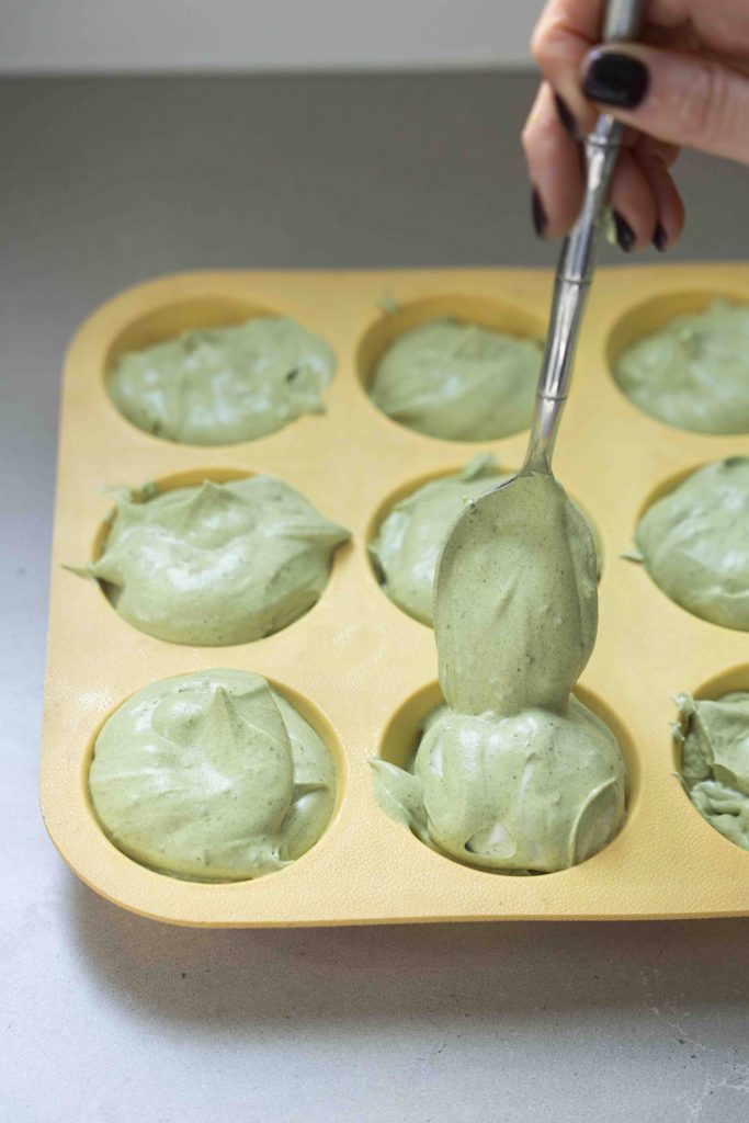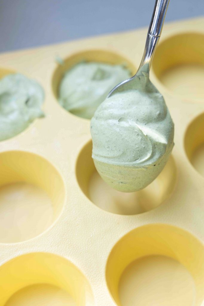 את הפרפה ניתן להכין בתבנית אינגליש קייק, כפי שעשינו בשלל מתכוני פרפה קודמים, או לחילופין, אם מתחשק לכם להכין מנות פרפה מאצ'ה אישיות (שיישמרו במקפיא שלמות להגשה הבאה), ניתן להכינו בכלים אישיים קטנים או בתבנית קאפקייקס  – כפי שעשיתי במתכון המצולם.