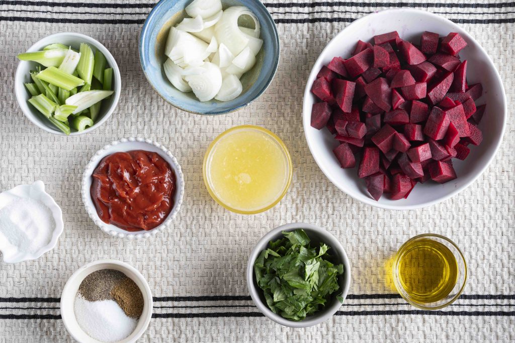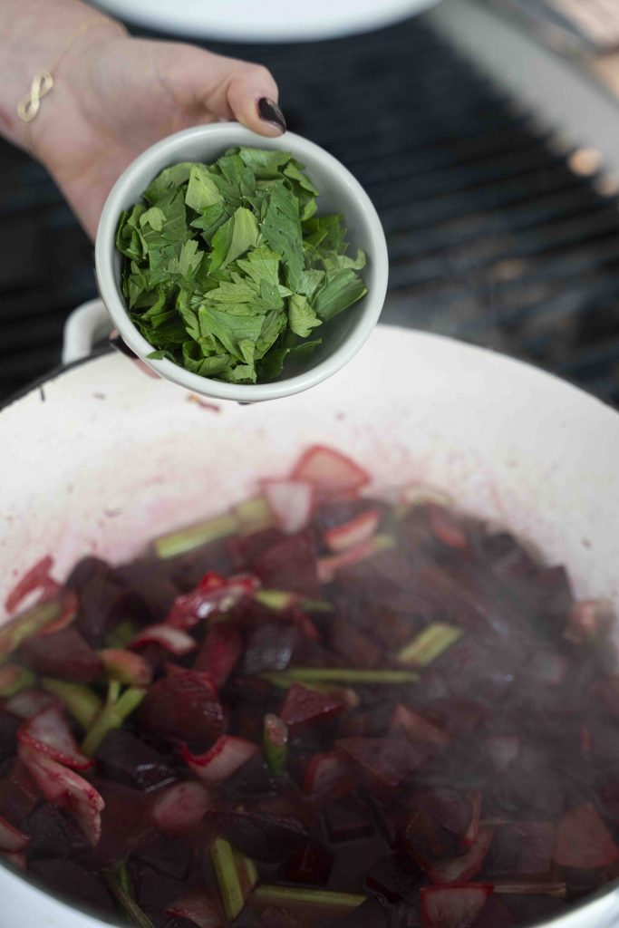 לעניין המתכון עצמו: ראשית, נתחיל בהכנת מילוי הקובה. שימו לב שבמילוי אנה משלבת חופן עלי סלרי (בגבעולים שלהם נשתמש בהמשך במרק סלק). אם תרצו ניתן להמיר את עלי הסלרי בעלי פטרוזיליה, אך הקשיבו לי – כדאי לכם להכין את המתכון בדיוק כפי שהוא.