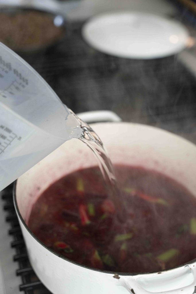 מוסיפים את 10 כוסות המים הרותחים, מערבבים ומביאים לרתיחה.