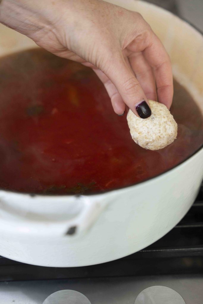 כעבור שעה של בישול המרק (שבזמן בישול המרק מגלגלים את הקובות – קפצו להמשך המתכון, אם לא הכנתם מראש קובות שמחכות לכם במקפיא