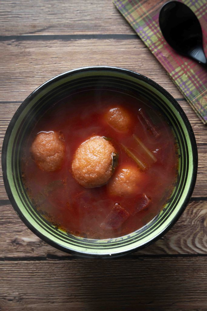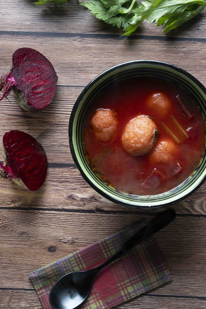 היכונו להתאהב במרק סלק עשיר מעט מתקתק, מעט לימוני, בעל צבע משגע שבתוכו שוחים איים בדמות קובות נפלאות וכל כך טעימות עם מילוי בשרי עשיר וציפוי מדויק. קערת מרק שכולה אהבה מונחת לפניכם.