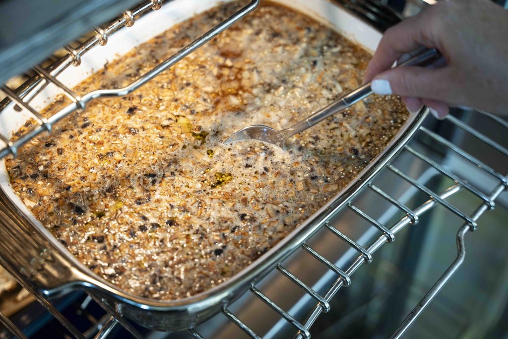 פותחים את התנור, מערבבים היטב מכניסים לחצי שעה נוספת.