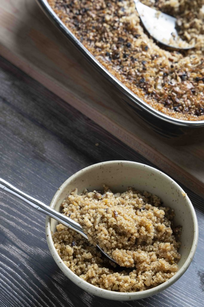 כפי שכבר יצא לי להזכיר במתכוני קינואה מעולים שעלו כאן לאורך השנים, מהקינואה עם הפטריות והשום, דרך סלט הקינואה הזה והזה, הקינואה הינה תוספת בריאה ביותר לתפריט המשפחתי שלכם – היא מהווה חלבון מלא (מכילה את כל תשעת חומצות האמינו החיוניות), עשירה בסיבים תזונתיים, ללא גלוטן, מקור מעולה לברזל, מגנזיום ואבץ ואפילו תורמת לאיזון רמות הסוכר והכולסטרול. אם כך ולאור כך, תודו שגם לכם מתחשק לנסות את מנת הקינואה המעולה והבריאה הזו.