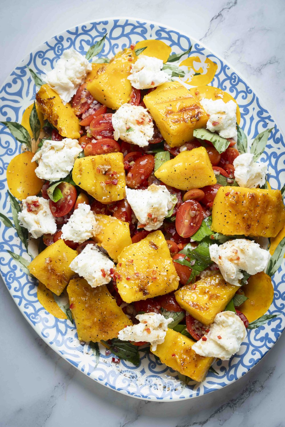 סלט מנגו צלוי עם מוצרלה בניחוח תאילנדי (או: קפרזה תאילנדית)